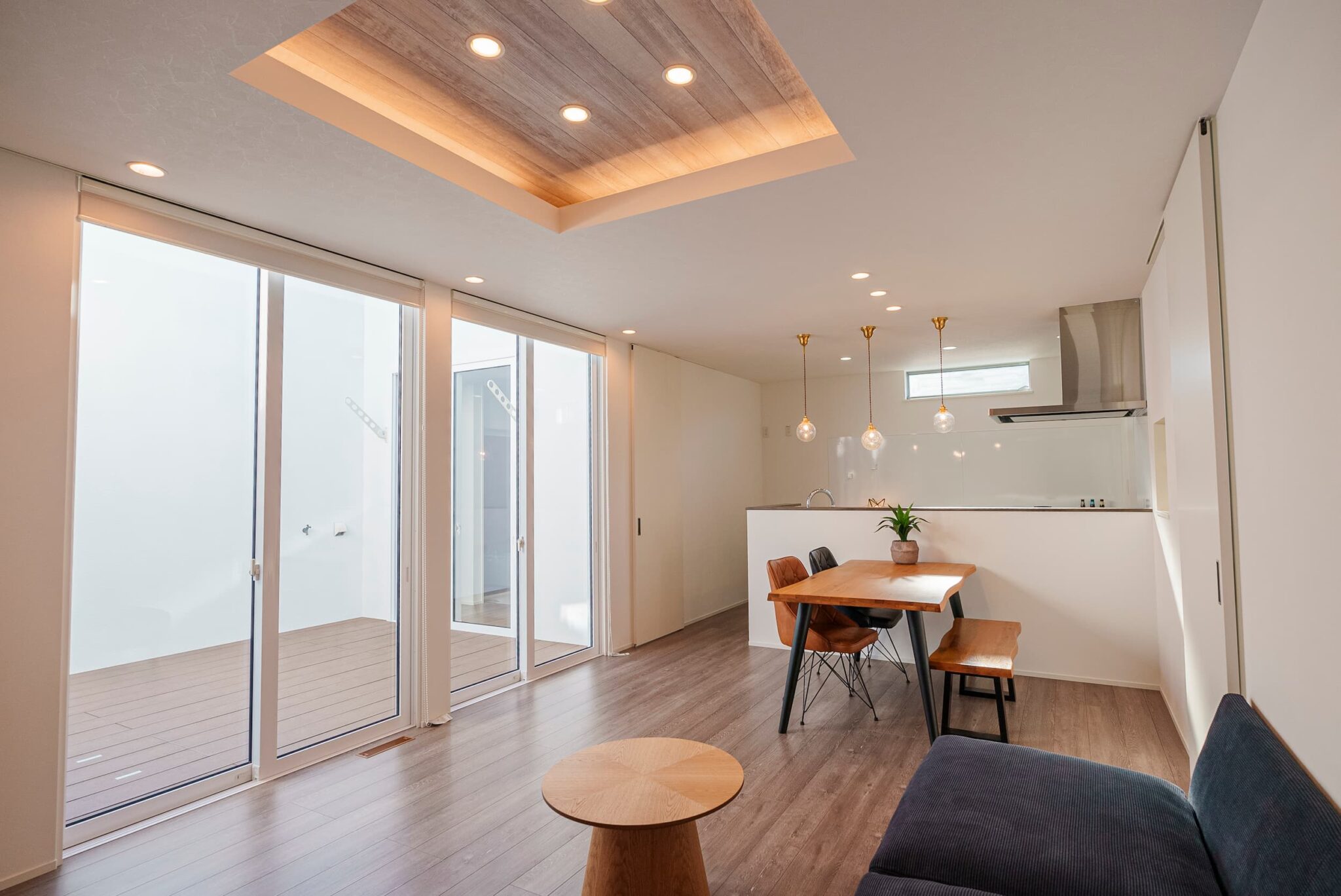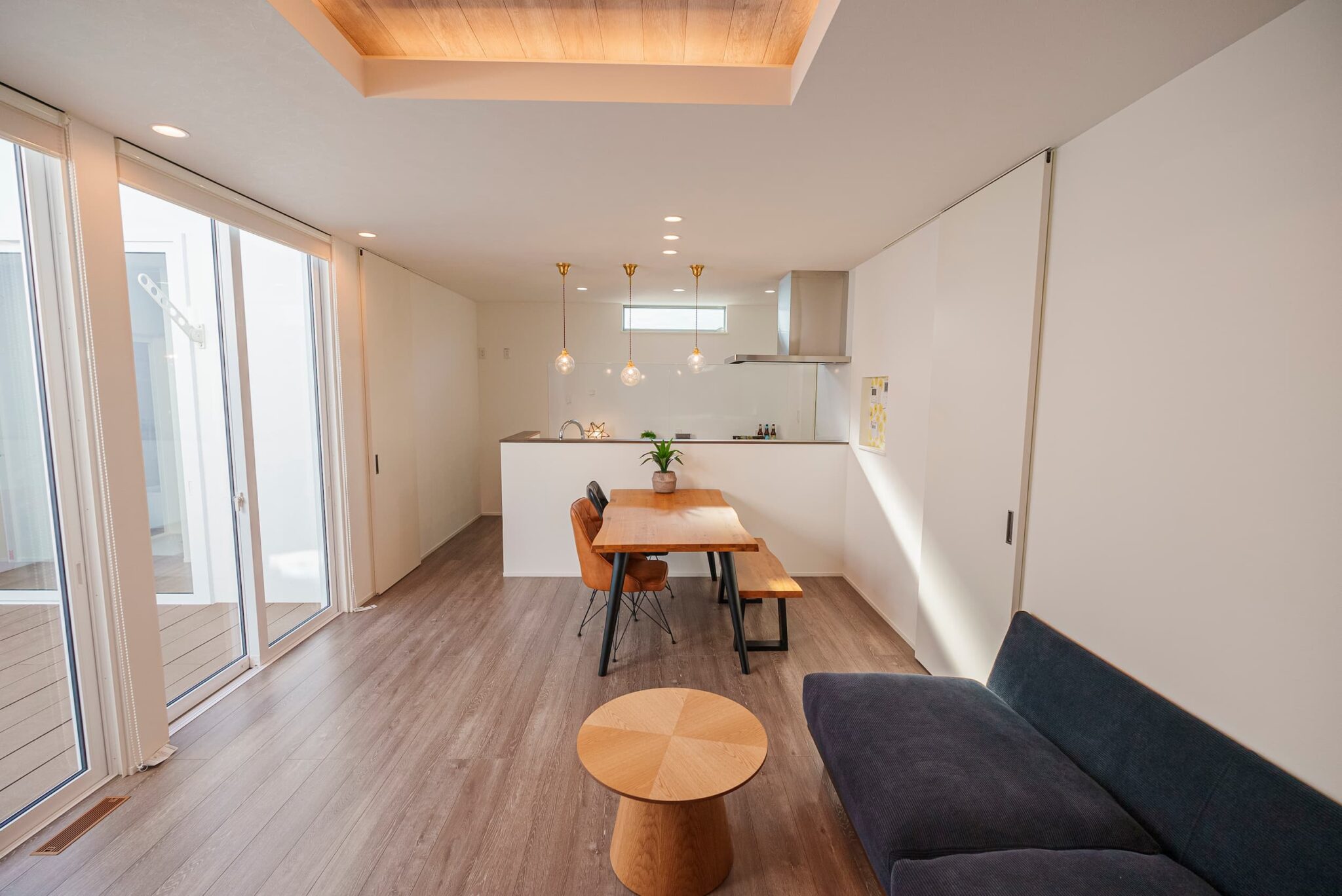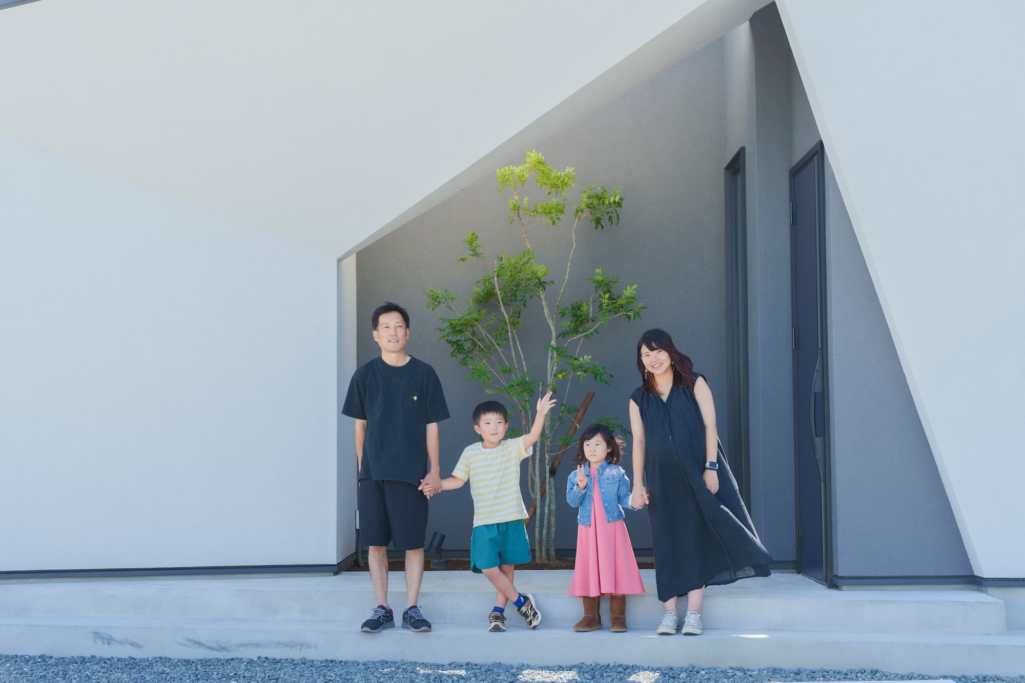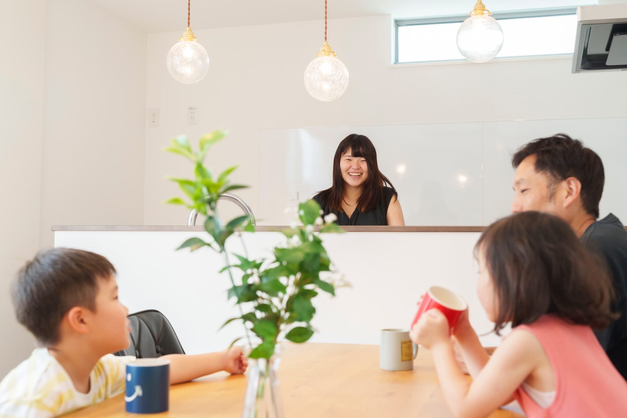「家といえば2階建てのイメージだった」と話す奥様ですが、提案された『平屋×中庭』のプランに大きな魅力を感じたとのことです。「知人からの紹介ということもあり、特に不安は感じず信頼して任せることができる会社というのが第一印象でした」と旦那様。 「平屋でも十分すぎる広さがありますし、何より中庭があれば家事をしながら子どもたちが遊んでいるのを見守れて安心です」と話すのは奥様。特に中庭のおかげで太陽の光をたくさん取り入れることができる点と、窓を少なくできるので防犯性を高められる点が魅力でした」と話します。